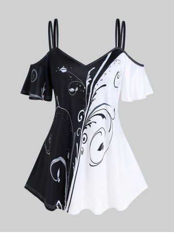 K*****n5Plus Size Two Tone Printed Cold Shoulder TeeColor: BLACK Size: 1X | US 14-16One of my favorite tops. This is so pretty, fits well and the design is beautiful. It is very flattering. Thank you Rosegal for your commitment 2 plus size women. You are my #1 shopping site.