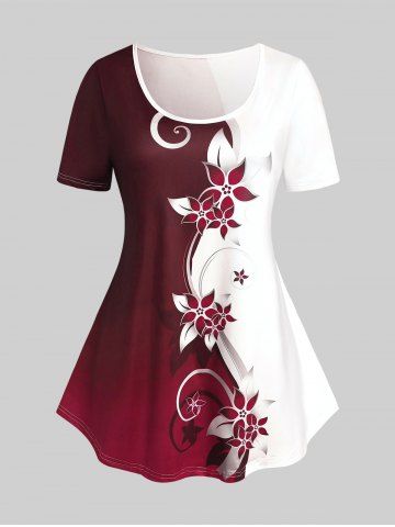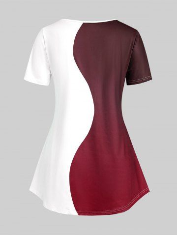 Plus Size Two Tone Short Sleeves Tee - Deep Red - 2x | Us 18-20
