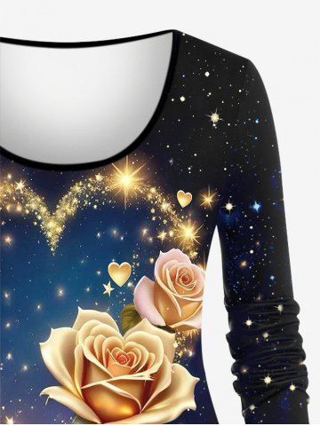 Graphic Tees > Plus Size Valentine's Day Galaxy Star Rose Flower Heart Glitter Sparkling Sequin 3D Print T-shirt