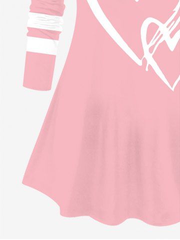Plus Size Valentine's Day Heart Colorblock Print Long Sleeve Top - Light Pink - Xs