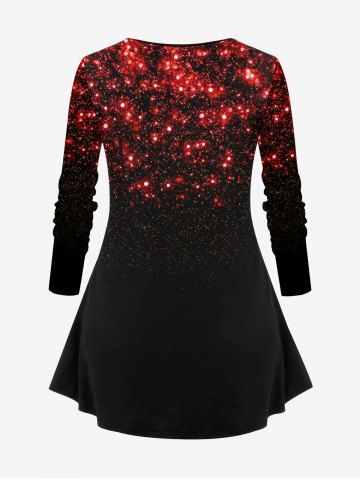 Plus Size Valentine's Day Heart Crystal Letters Glitter Sparkling Sequin 3D Print Long Sleeve T-shirt - Red - 6x