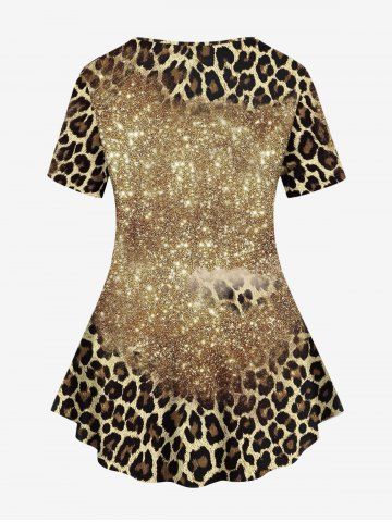 Plus Size Valentine's Day Love Leopard Plaid Heart Glitter Sparkling Sequin 3D Print T-shirt - Coffee - 6x