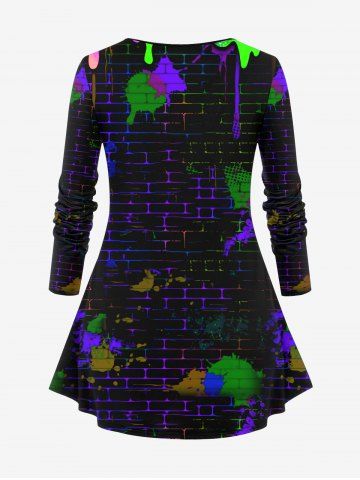 Plus Size Valentine's Day Skulls Heart Flower Brick Wall Paint Splatter Letters Print T-shirt - Black - Xs