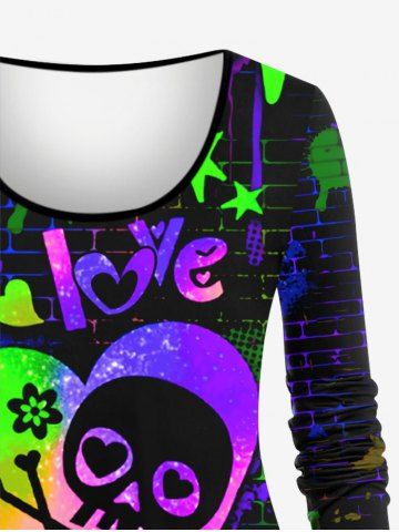 Plus Size Valentine's Day Skulls Heart Flower Brick Wall Paint Splatter Letters Print T-shirt - Black - 1x