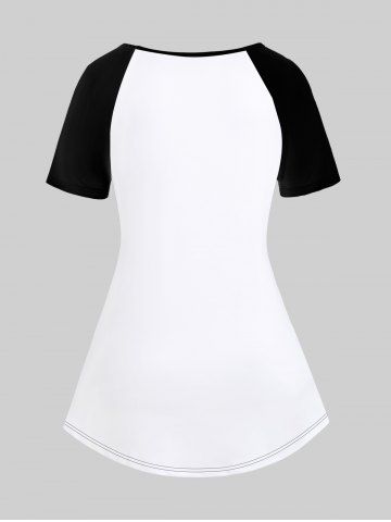 Plus Size Valentines Cat Love Heart Printed Raglan Sleeves Graphic Tee - White - S | Us 8