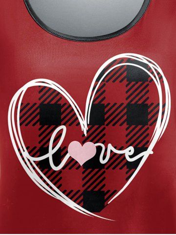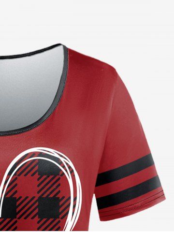 Plus Size Valentines Heart Letters Plaid Short Sleeves Tee - Deep Red - 3x | Us 22-24