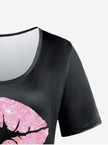 C*****k5Valentines Lip Heart Printed Tee and Lace Panel Capri Leggings with Pocket Plus Size OutfitColor: BLACKCute outfit. Looks great together. Love the material. I have purchased several of these shirts because they cover my behind and my tummy area nicely over leggings.