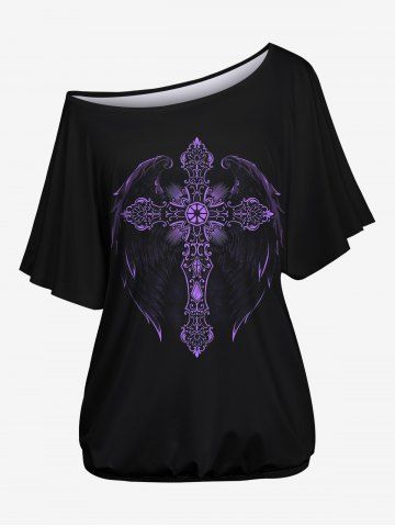Plus Size Vintage Sun Moon Star Floral Spider Web Print Racerback Tank Top and Cross Heart Graphic T-shirt Set - Purple - 1x