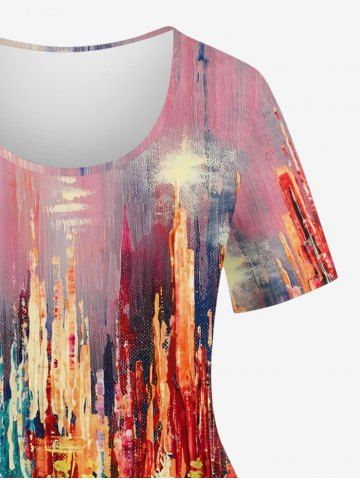 Plus Size Wash and Ink Painting Print Short Sleeves T-shirt - Multi-a - 3x