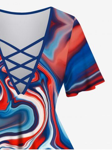 Plus Size Watercolor Striped Print Ombre Lattice T-shirt - Blue - 4x