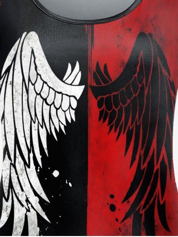 S*****e5Wings Paint Splatter Printed Colorblock Tee and Rhombus Printed Skinny Leggings Plus Size Gothic Summer OutfitColor: REDles deux pièces se portent ensemble ou séparément. j'adore le tissus et le look donne exactement ce à quoi je m'attendais.