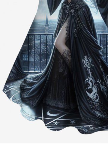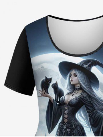 Plus Size Wizard Glitter Moon Cat Print Ombre T-shirt - Black - M