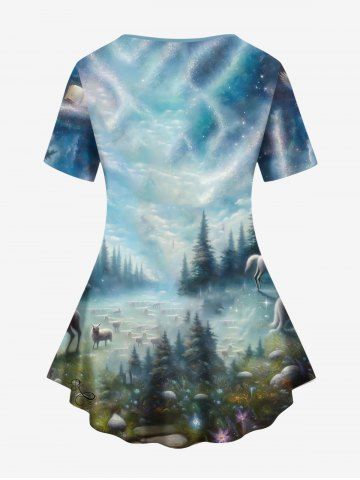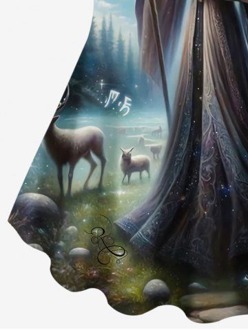Plus Size Wizard Grassland Elk Pigeon Sky Print Ombre T-shirt - Multi-a - 2x
