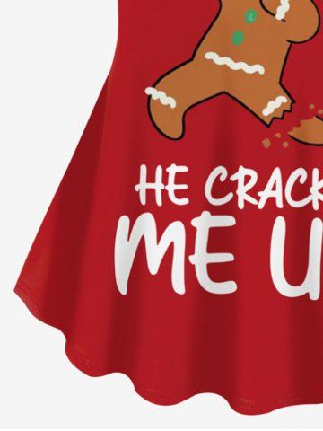 Plus Size Women's Christmas Hat Gingerbread Letters Print T-shirt - Red - 6x