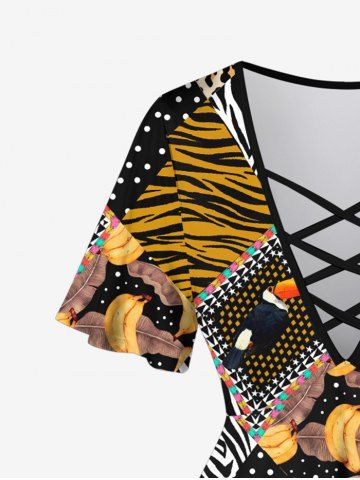 Graphic Tees > Plus Size Zebra Striped Leopard Banana Leaf Geometric Plaid Polka Dot Bird Print Lattice Top
