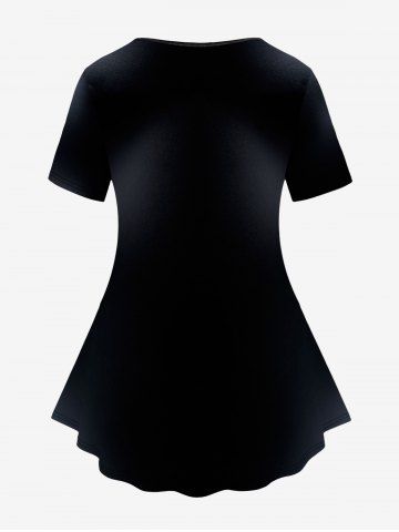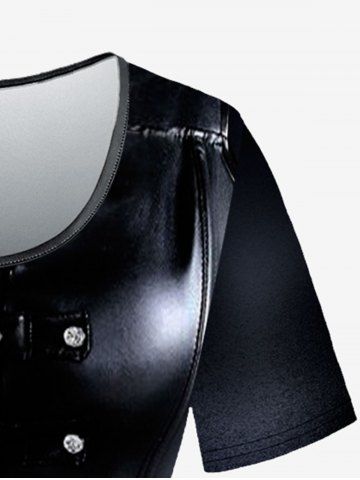 Plus Size Zipper Grommets Buckles 3D Print T-shirt - Black - 3x
