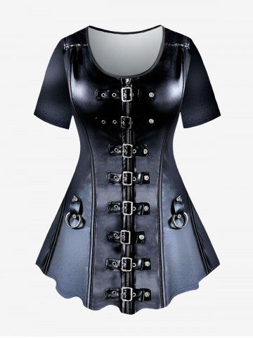 Graphic Tees > Plus Size Zipper Grommets Buckles 3D Print T-shirt