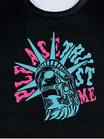 Skull Letters Printed Unisex Graphic Tee - Black - 3xl
