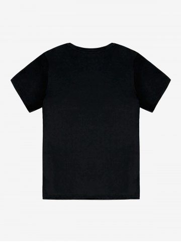 Unisex Cartoon Cat and ECG Print Graphic Tee - Black - M