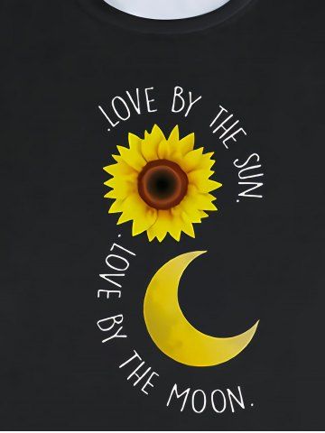 Unisex Letter Sunflower Moon Print Graphic Tee - Black - 4xl