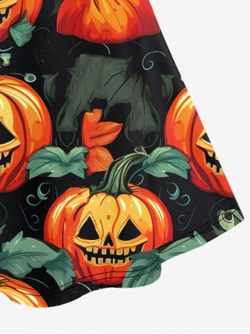 Gothic Pumpkin Leaf Print Crisscross Halloween Cami Dress - Multi-a - S