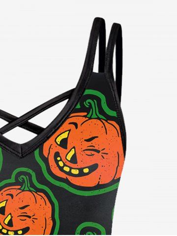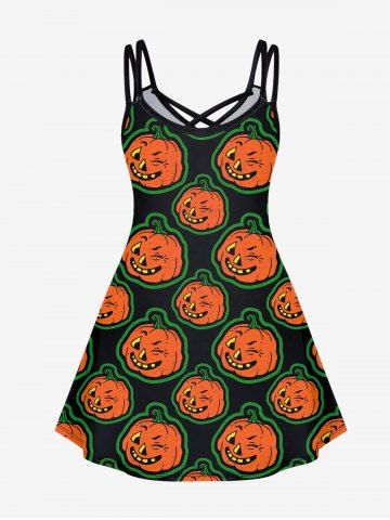 Gothic Pumpkin Print Crisscross Strappy Cami Dress - Orange - 3x
