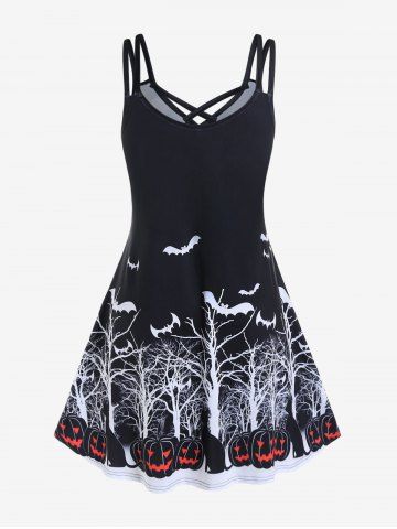 Halloween Pumpkin Tree Bat Print A Line Dress - Black - 4x | Us 26-28