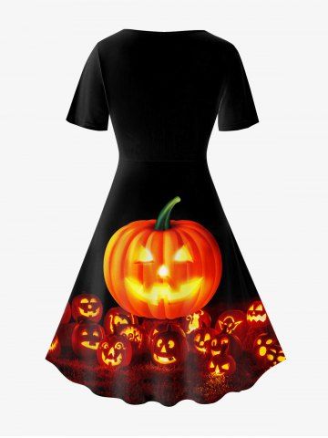 Halloween Pumpkins Printed Vintage Short Sleeves A Line Dress - Black - M | Us 10