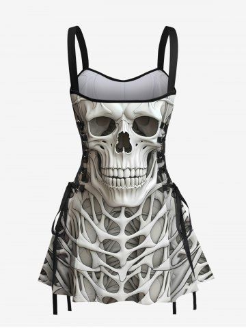 Halloween Dresses > Halloween Skull Skeleton Print Lace Up Tank Dress