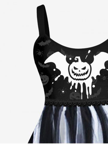 Plus Size 3D Bat Pumpkin Spider Mesh Print Halloween Tank Dress - Black - 1x