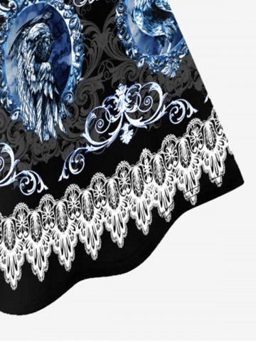 Plus Size 3D Eagle Rose Floral Paisley Belt Print Halloween Tank Dress - Blue - 3x