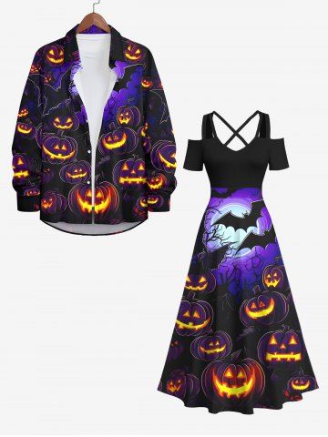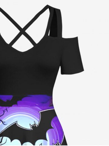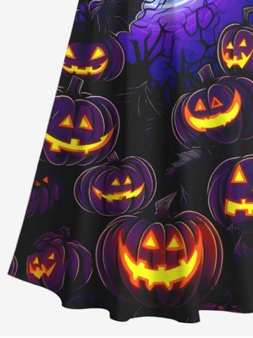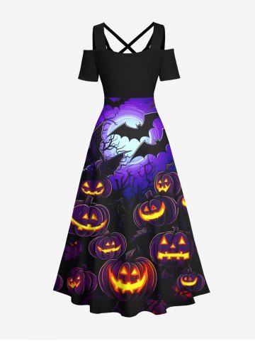 Plus Size Bat Glitter Pumpkin Lantern Tree Moon Print Ombre Halloween Costume Crisscross A Line Maxi Dress - Black - Xs