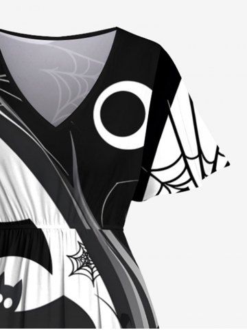 Plus Size Bat Spider Web Curve Print Halloween Split A Line Midi Dress - Black - S