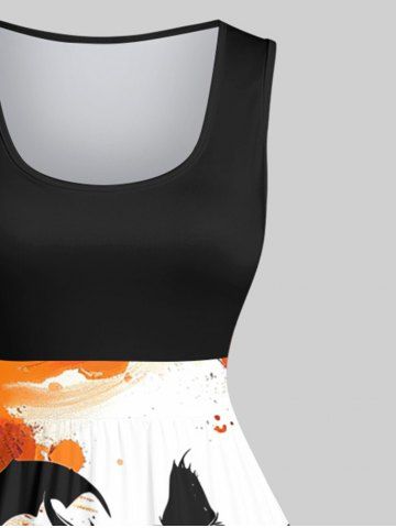 Plus Size Cat Pumpkin Bat Cross Ink Painting Splatter Print Halloween Costume Vintage Swing A Line Dress - Black - 2x