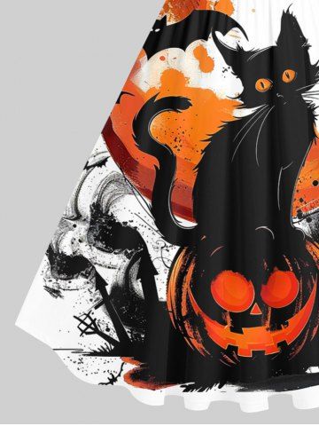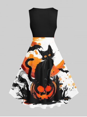 Halloween Dresses > Plus Size Cat Pumpkin Bat Cross Ink Painting Splatter Print Halloween Costume Vintage Swing A Line Dress