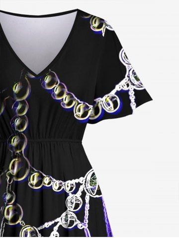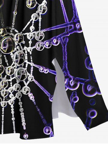 Plus Size Chain Bead Spider Web Print Halloween Costume Split Pocket A Line Midi Dress - Black - Xs