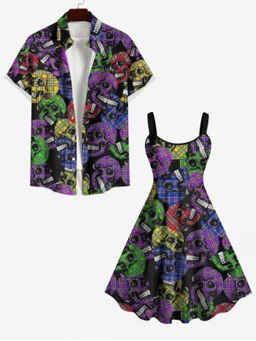 Halloween Dresses > Plus Size Colorful Plaid Skulls Print Halloween Costume A Line Tank Dress