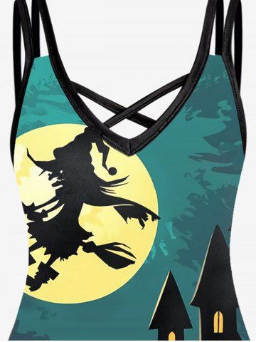 Crisscross Skulls Witch Printed Halloween A Line Dress - Deep Green - 4x | Us 26-28