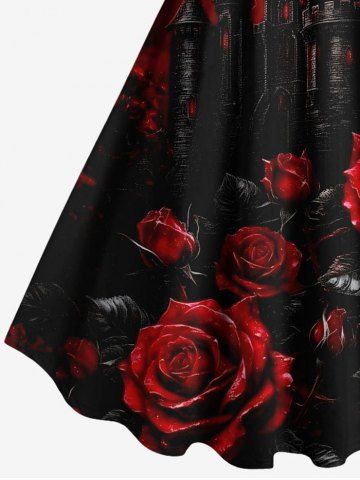 Plus Size Dark Style Rose Flower Castle Moon Print Halloween A Line Tank Dress - Red - S