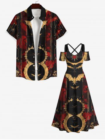 Halloween Costume Distressed Bat Spider Colorblock Sun Print Plus Size Matching Set For Couples