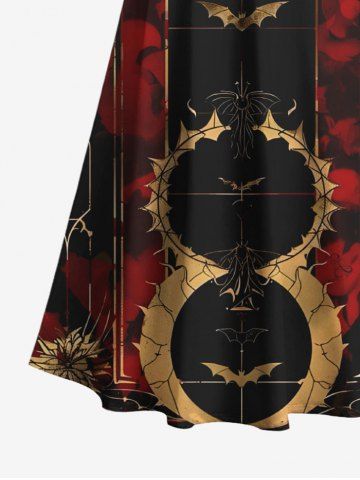 Halloween Dresses > Plus Size Distressed Bat Spider Colorblock Sun Print Halloween Costume Crisscross A Line Maxi Dress