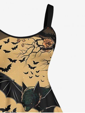 Plus Size Distressed Bat Tree Flower Sun Print Halloween Costume A Line Tank Dress - Black - 1x