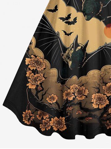 Halloween Dresses > Plus Size Distressed Bat Tree Flower Sun Print Halloween Costume A Line Tank Dress