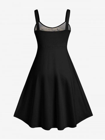Plus Size Distressed Bat Tree Flower Sun Print Halloween Costume A Line Tank Dress - Black - 4x