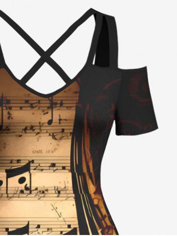 Halloween Dresses > Plus Size Distressed Music Note Print Halloween Costume Crisscross A Line Maxi Dress