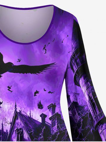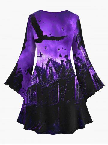 Plus Size Eagle Castle Ombre Sky Print Halloween Costume A Line Dress - Purple - 4x