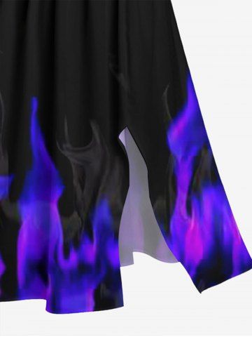 Plus Size Fire Flame Print Halloween Costume Split Pocket A Line Midi Dress - Black - L