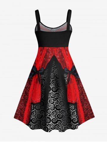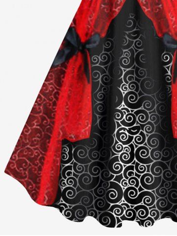 Halloween Dresses > Plus Size Halloween Vampire Floral Pattern Crisscross Mesh Bowknot 3D Print Tank Dress