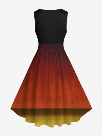 Halloween Dresses > Plus Size Ghost Fire Flame Print Halloween Costume Ombre Vintage Swing A Line Dress