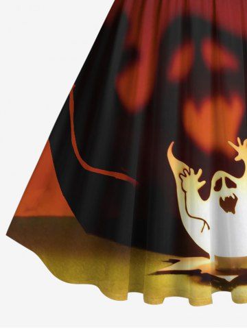 Plus Size Ghost Fire Flame Print Halloween Costume Ombre Vintage Swing A Line Dress - Black - 6x